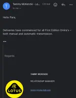 Looking forward to your comparison of the two cars, including once the shiny penny syndrome wears off.@Nova is the GOAT! I operated my timeline based on his tracking sheet. Once I saw my car on his list (July 4), I sold my Corvette C8 that same day to my local dealer to make space. Waiting now for the Emira to get to my dealer.![]()