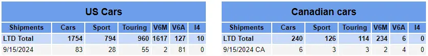 Thank you @Nova . Mine is on the list! Now the wait beginsMore cars arrived on 9/15 for both US and Canada, this time mostly Automatics. Click on the image below to see the tracking sheet:
