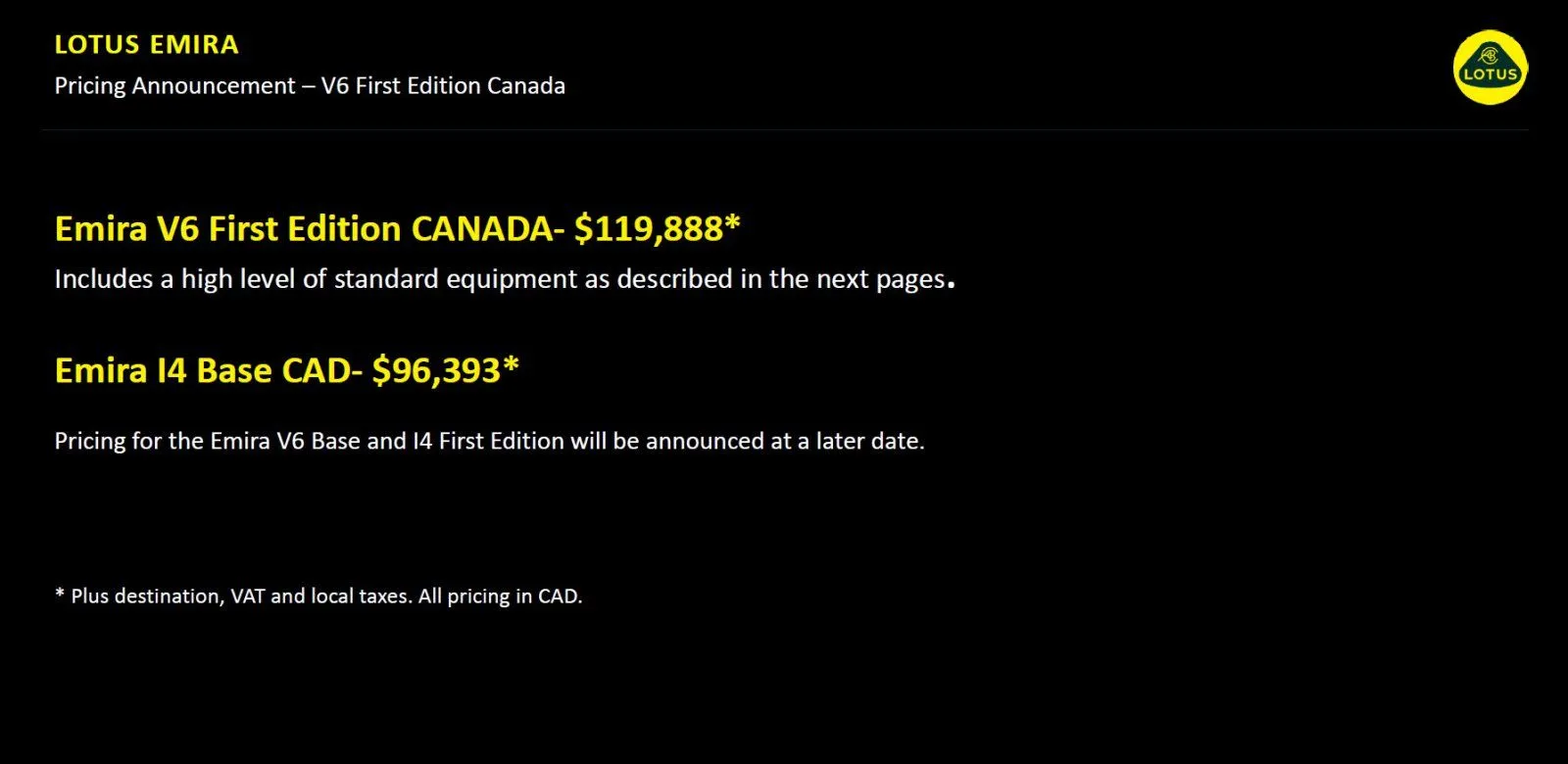 The Emira had been priced for them. The rest of Canada is an afterthought.