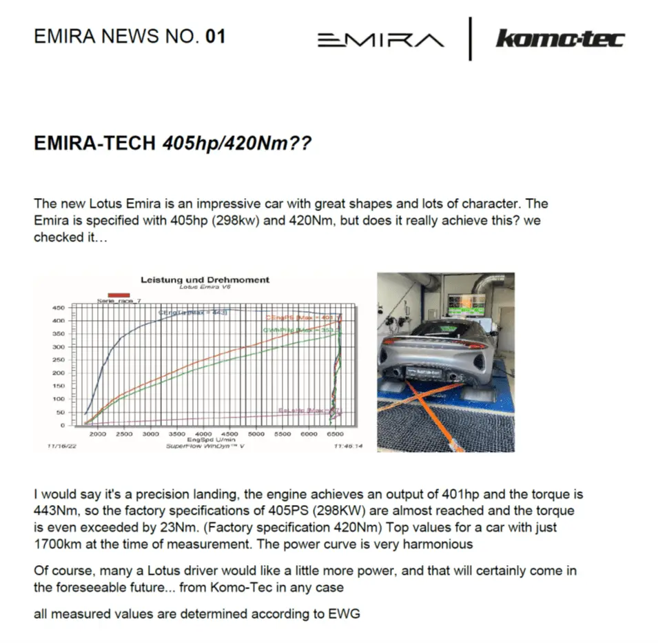 Oh I get the point, you are down on the i4 and modern emission regs muffling turbo 4's.Think you don't get the point. The Emira i4 is not just a 4 cylinder. It's a EU6 conform 4 cylinder with cats, OPF, noise limitations, ... And Lotus will make only one Version that complies to all types of different regs. So everybody of you, no matter where you live, will get a car that complies to our German/European noise regsMuch fun with that. I just looked up the regs: 73 Db max, no matter if the flaps are open or closed. And the sound tuning will be a deep, monotone noise with many farting sounds. Sad as it is. The engine itself is really great.