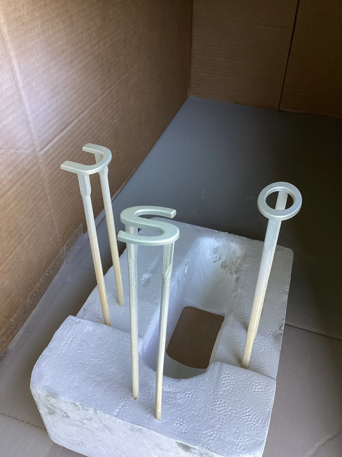 Starting with a black OEM badge ordered from Bell and Colvill, I removed the letters from the paper release liner and hand cut the silhouette of each letter’s double sided adhesive tape out of the liner using an X-Acto knife. I then re-applied the release liner cutouts to the adhesive tape on each letter. I roughened up the surfaces of each letter with some fine sandpaper and glued the bottom of the release liners to disposable chopsticks. I then spray painted three coats of Car-Rep 2K Epoxy Grey Primer.