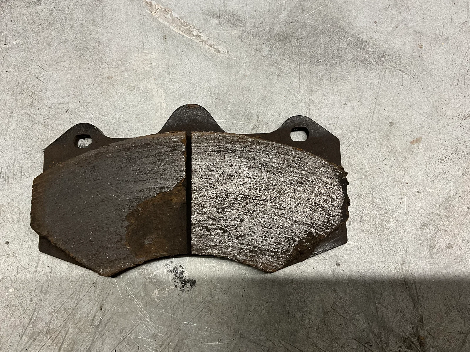 Fitted some EBC Red pads. Wasn’t overly impressed with the AP branded pads in terms of performance (grabby and loads of dust), nor was I impressed when I took the pads out. See pic, large chunk of pad missing. I presume this has been pulled away because the pads have stuck to the disk at some point.