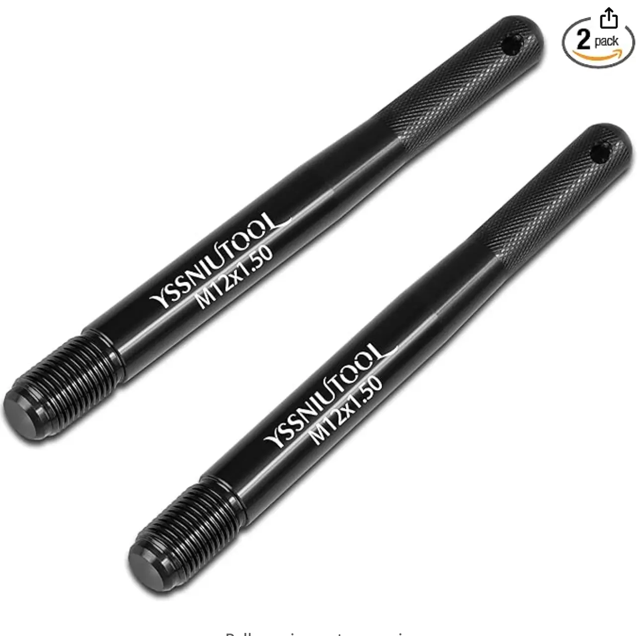 I've come to dislike the ones that have knurled ends like this. Helps thread it in, but if you happen to be a little off they end up being a decently effective file on the inside of the wheel bolt hole.I've found that using one of those longer guides at the top along with a shorter one at the bottom works easiest, particularly when placing the wheel back. This way, you only have to concentrate on aligning the top (longer) guide with one of the rim's lug bolt holes, and once you have the wheel supported on that one, it becomes easier to align the second guide. Here's a picture of the Amazon short guide pin.